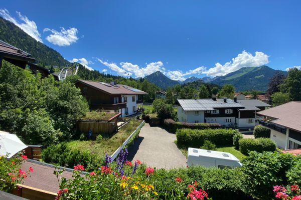 Von Ihrem Balkon genießen Sie den Blick nach Süden in den Hauptkamm der Allgäuer Alpen, von der Trettachspitze bis zum Hohen Ifen.