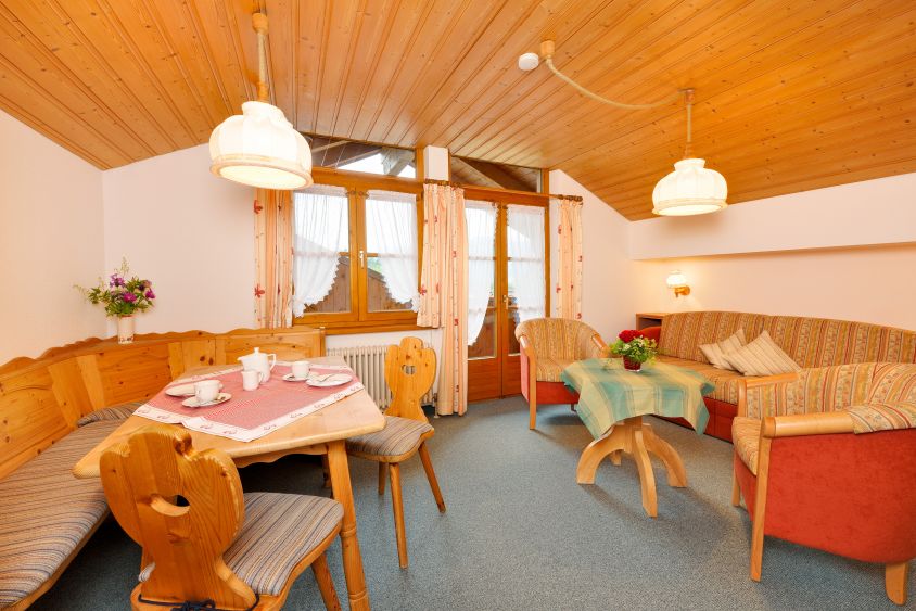 Vom Wohnraum aus gelangen Sie auf den Südbalkon. Dort genießen Sie die Sonne und den herrlichen Blick in die Oberstdorfer Berge.